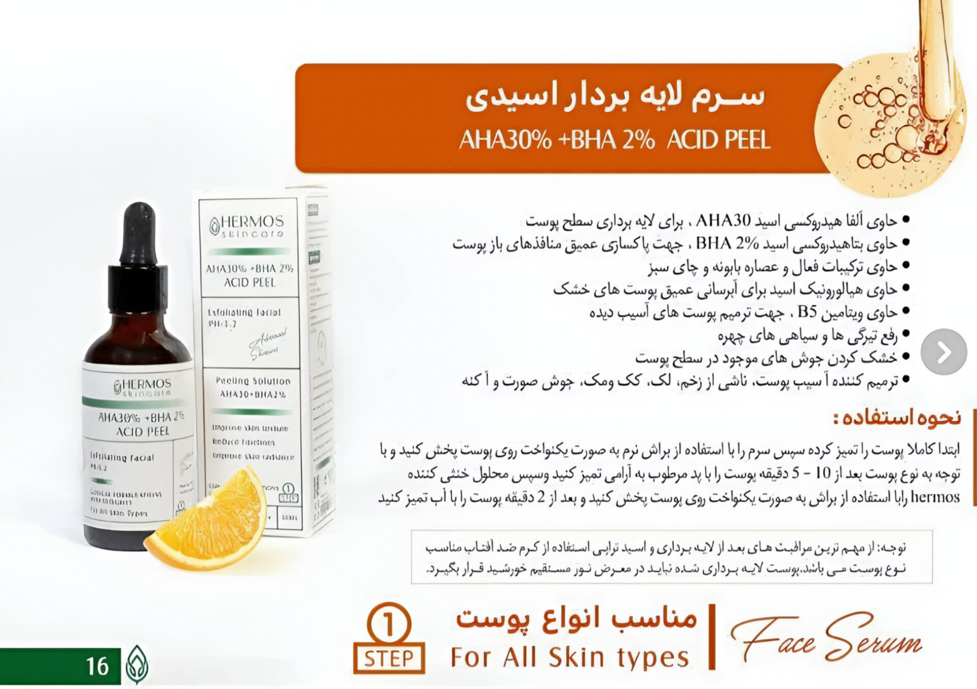 سرم اسید ۵۰AHA 30% BHA 2%میلی گرمی مدل هرموس